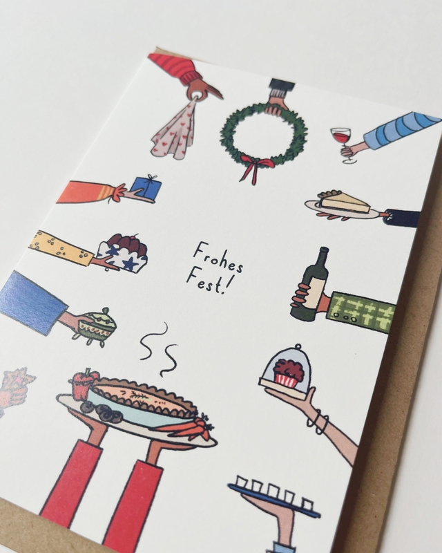 Eine Weihnachtskarte mit "Festmahl"-Motiv.