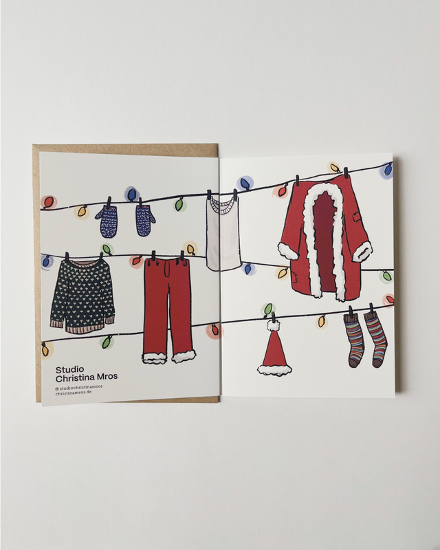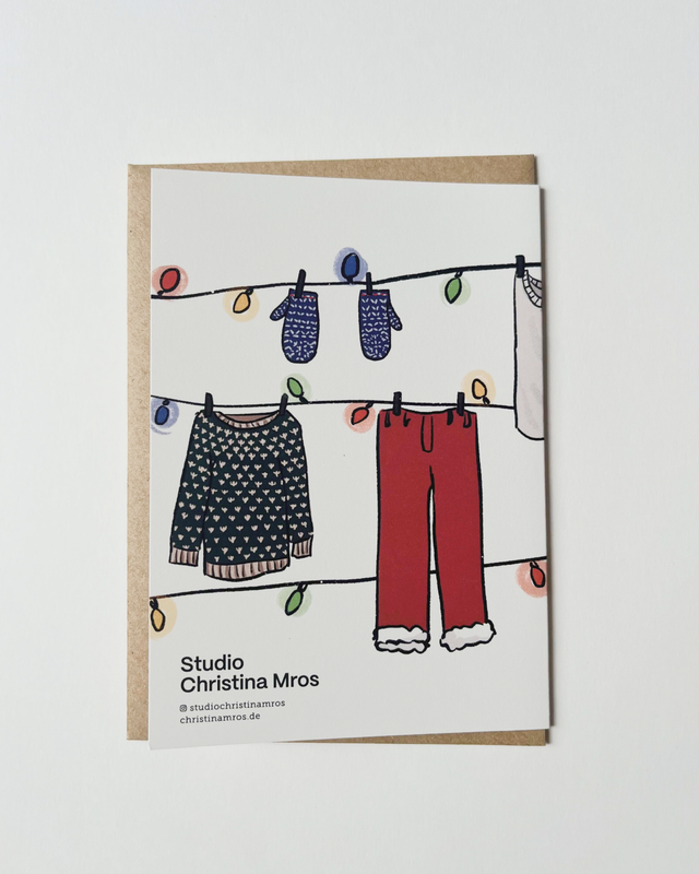 Eine Weihnachtskarte mit "Wäscheleine"-Motiv.